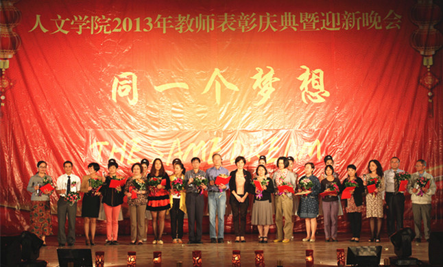 10月28日,人文学院在金山校区礼堂举办2013年优秀教师表彰暨迎新晚会。19名从教20周年以上教师和28名表现突出的教师受到表彰。程灵副校长,党政办、学工处、人事处、教务处、科研处、团委有关同志应邀出席晚会并为教师们颁奖。