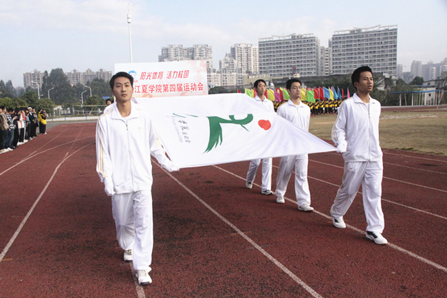 在庄严的国歌声中,鲜艳的五星红旗冉冉升起在田径场上空。程灵副校长宣布福建江夏学院第四届运动会开幕,并在开幕辞中充分肯定了过去一年来我校体育工作成就,希望通过运动会的举办形成全校上下热爱体育运动、弘扬体育精神的浓厚氛围,并对裁判员、运动员和观众提出了要求。陈婕同学、王波老师分别代表运动员和裁判宣誓。