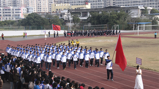 8点30分,踏着激昂的旋律,国旗队迈着整齐的步伐正式入场,校旗、会旗、彩旗队随后缓缓入场,各二级学院代表队、机关代表队、裁判员方阵依次亮相。嘹亮的口号,整齐的步伐,自信的微笑,他们用昂扬的姿态、饱满的精神展示了我校师生自信团结、奋力拼搏、积极进取的精神风貌。