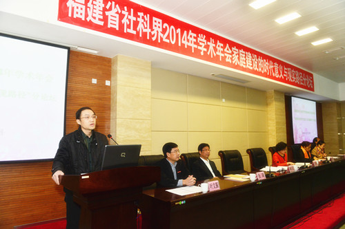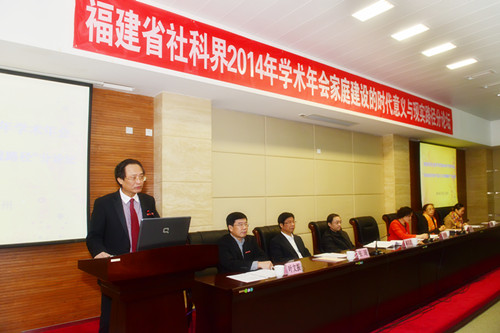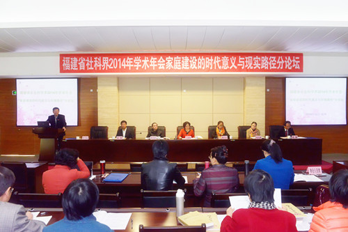 12月6日,省社科界2014年学术年会“家庭建设的时代意义与实现路径”分论坛暨省妇女理论研究会2014年年会在我校举行。省妇联党组副书记、副主席王秋梅,省社科联党组成员、秘书长林兵武,省法学会专职副会长张琦,厦门大学原党委副书记陈力文,校党委副书记张路出席了论坛开幕式。开幕式由我校副校长叶文振主持。