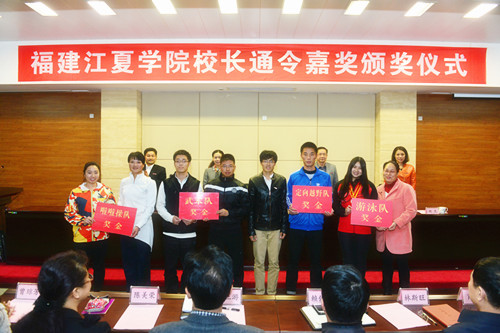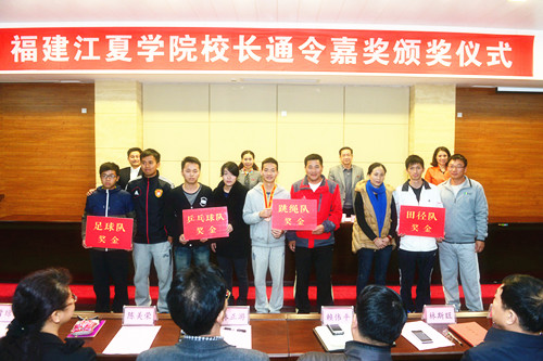 校领导陈晓红、程灵,校长助理林清快,宣传部、学工部、教务处、后勤处、校团委、公体部负责人,经贸学院、海峡学院负责人,各二级学院党委副书记,校体育代表团的全体运动员和教练员以及公体部全体教职工参加颁奖仪式。(党、政办公室)
