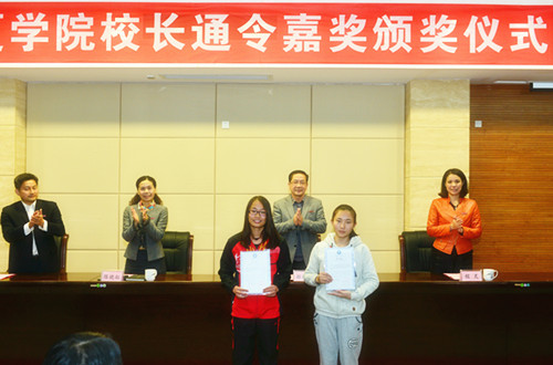 12月8日,我校举行校长通令嘉奖颁奖仪式。郑建岚校长为汤葆芳、王玉婷同学颁发校长嘉奖令。