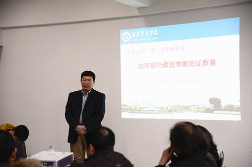 1月12日中午,校“学者之家”首次学术茶座在行政楼A301成功举办。副校长叶文振教授应邀作了题为“如何提升课题申报论证质量”的学术演讲。