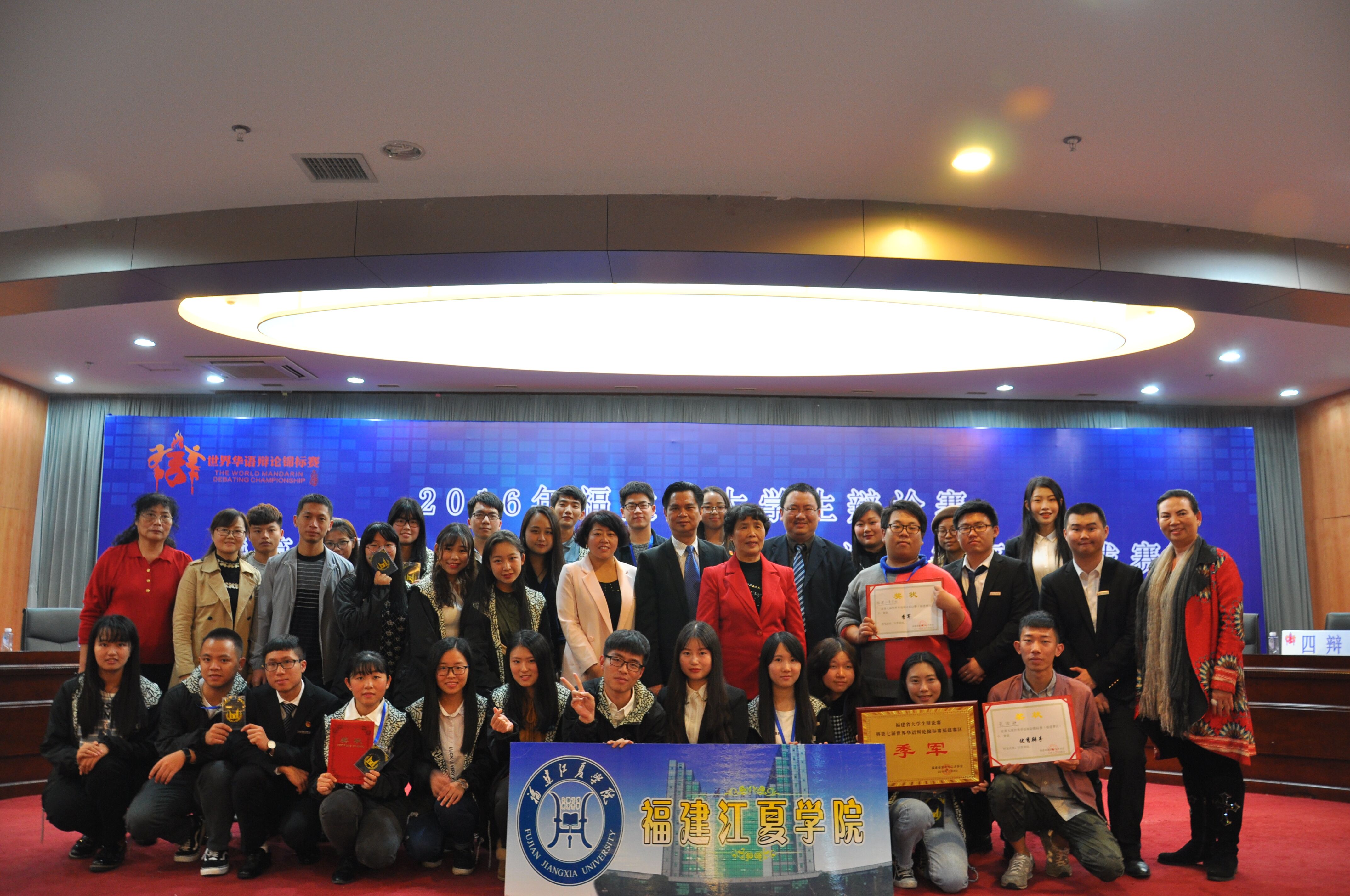 福建省演讲与口才协会会长黄淑钦代表主办方和承办方致辞;团省委学校部副部长黄承祖代表评委作了精彩点评;与会领导与评委共同为获奖团队和个人颁奖。经过2天14场初赛、复赛和决赛的激烈角逐,最终国立华侨大学代表队荣获冠军、福州大学代表队荣获亚军、我校代表队荣获季军。福建农林大学等5个代表队获优胜奖。我校孔傲翀等12名同学获得“优秀辩手”。