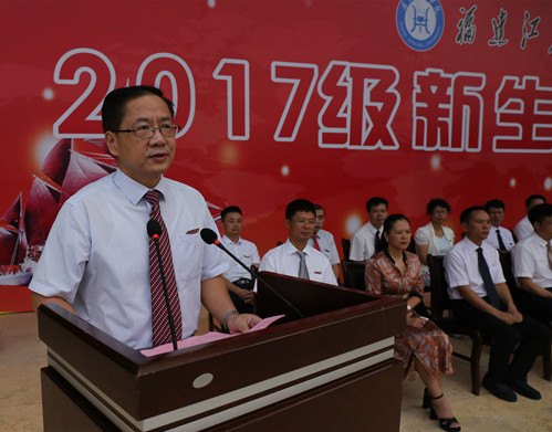 校长郑建岚在致辞中代表学校向来自全国18个省区的3899位2017级同学表示热烈祝贺和诚挚欢迎。他简要介绍了学校校情,并对全体新生提出三点希望:一是希望同学们志存高远、昂扬奋进。要践行感恩父母、感恩祖国的家国情怀,用青春和汗水浇灌梦想之花,为创造人生美好的前程,为国家富强和民族复兴贡献自己的一份宝贵力量。二是希望同学们牢记校训、内外兼修。要努力掌握专业知识和技能,把正确的道德认知、自觉的道德养成、积极的道德实践结合起来,成为践行社会主义核心价值观的主力军,成为全面发展、内外兼修的大学生。三是希望同学们锤炼品格、健康成长。要发扬“创新、拼搏、包容、开放”的学校精神,只争朝夕、不断对自己提出更高的目标,勇于创新、敢于拼搏,在学习生活中培养自己的集体精神和协作能力,把自己培养成会学习、能创新、爱生活的人,创造出多彩快乐的大学生活。最后,郑建岚衷心祝愿每一位新同学在福建江夏学院度过人生最美好、最精彩、最值得回忆的大学时光,学业顺利、身体健康。