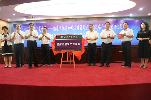 出席仪式领导共同为“福建江夏学院装配式建筑产业学院”揭牌