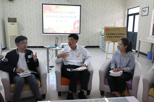 为了深入学习贯彻党的十九大精神,11月14日,校党委书记李宝银走进青年学生,与学校“习近平新时代中国特色社会主义思想读书社”学员就学思践悟党的十九大精神进行面对面交流。校党委副书记陈晓红、王长勇,党政办、宣传部、校团委负责人参加交流会。