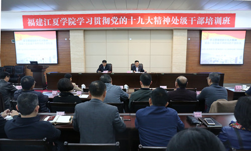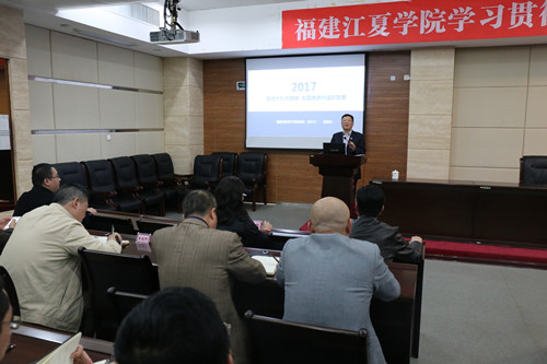 11月30日下午,省委教育工委学习贯彻党的十九大精神宣讲团副团长,省委教育工委委员,省教育厅党组成员、副厅长陈国龙莅临福建江夏学院宣讲党的十九大精神,作了题为《贯彻党的十九大精神 全面推进内涵式发展》的专题辅导报告。报告会由校党委书记李宝银主持。
