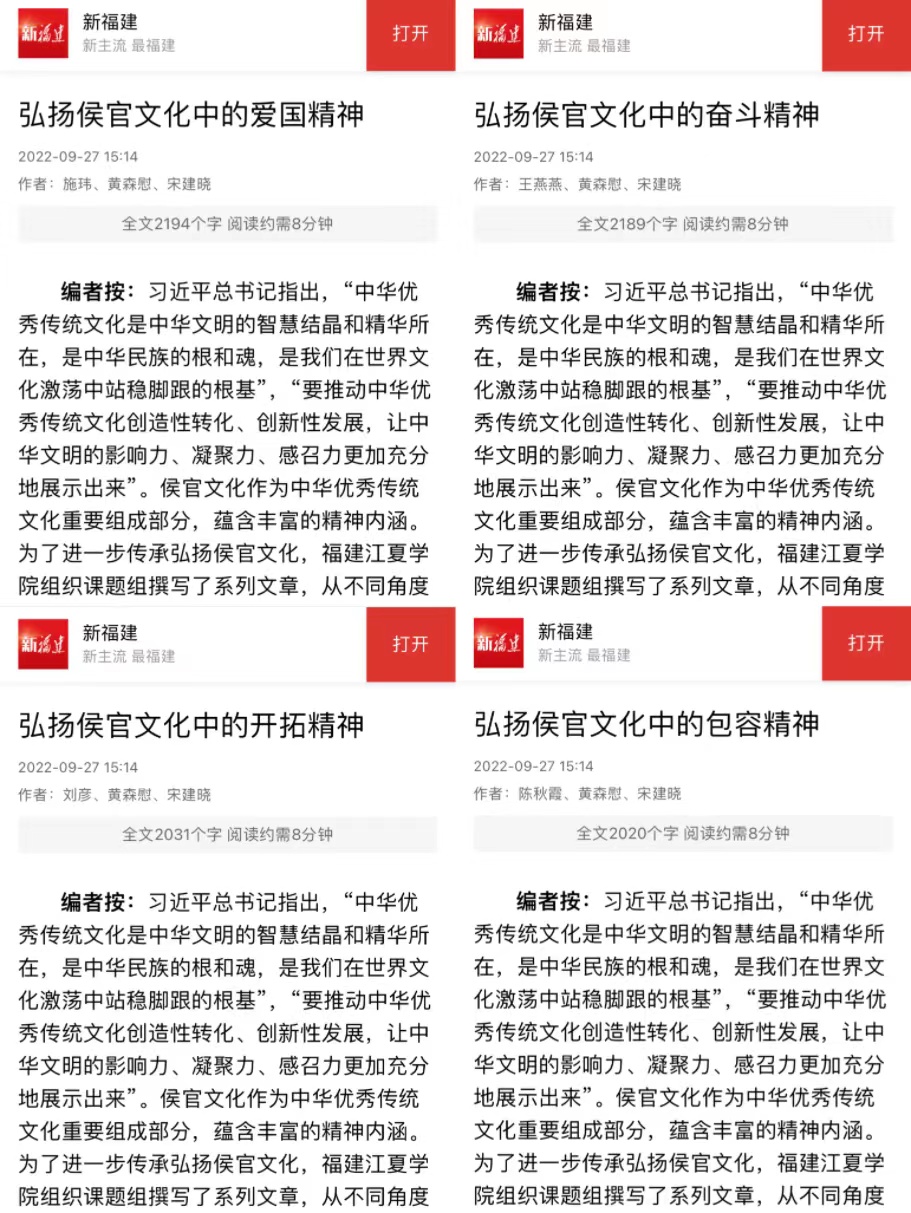 “一个更加开放包容的世界,能给各国带来更广阔的发展空间,给人类带来更繁荣的未来。”习近平总书记鲜明提出,“我们要包容并蓄,共同扩大开放融合”,为推动建设开放型世界经济、构建人类命运共同体提供了正确指引。海纳百川的文化包容性,正是中华文明得以传承至今、生生不息的关键基础。包容是经济和科技发展的重要因素,在时代飞速发展的今天,唯包容得以进步。国家的发展,社会的进步,都需要先以包容的心态汲取他国先进的技术和思想,再立足于本国国情进行创新。立足新时代,侯官文化中的包容精神将为我们在实现中华民族伟大复兴中国梦的奋斗征程中提供精神引领。