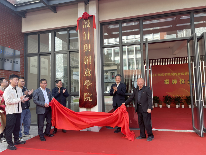 3月15日下午,设计与创意学院院牌暨数智创意产业学院揭牌仪式在10号产教融合楼举行。校党委副书记陈敏辉,金山世游网络科技有限公司副总裁黄荣华,福建叮当游戏设计有限公司叶磐,院牌捐赠者、木雕工艺美术师陈德出席活动。