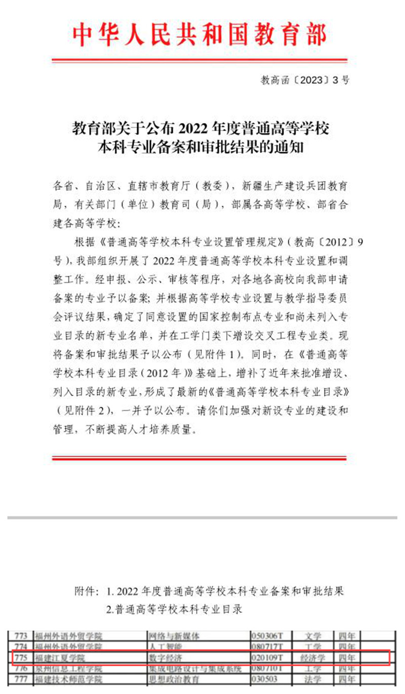 近日,教育部公布2022年度普通高等学校本科专业备案和审批结果。我校获批数字经济专业(专业代码020109T)。