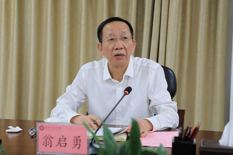 5月5日下午,我校召开学习贯彻习近平新时代中国特色社会主义思想主题教育读书班第一专题“凝心铸魂筑牢根本”研讨暨党委理论学习中心组(扩大)学习会。省委主题教育第十四巡回指导组组长、省政府参事翁启勇一行到会指导。校党委副书记、校长,校主题教育领导小组副组长凌启淡主持会议。在家校领导王长勇、陈敏辉、刘慧宇、徐杰、林学坚参加学习。