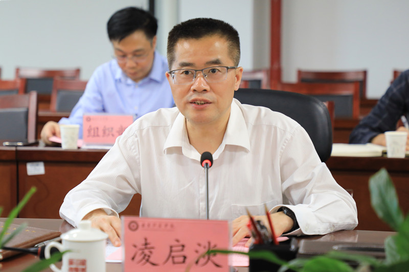 凌启淡紧扣学校发展实际,作了题为“坚持用习近平新时代中国特色社会主义思想铸魂育人”的重点发言。一要强化理论武装,拧紧理想信念的“总开关”。全面学习领会习近平新时代中国特色社会主义思想,在深学细照笃行中持续增进对党的创新理论的政治认同、思想认同、理论认同、情感认同,不断提高政治判断力、政治领悟力、政治执行力,更加自觉深刻领悟“两个确立”的决定性意义,增强“四个意识”、坚定“四个自信”、做到“两个维护”。二要坚持党建引领,凝聚干事创业的“精气神”。坚持以政治建设为统领,全面贯彻党的教育方针,落实立德树人根本任务;加强党对学校工作的全面领导,坚持社会主义办学方向,践行“四个服务”的时代使命;打造党建工作品牌,巩固提升全省党建工作示范高校建设成果,推进党建业务融合创新。三要聚焦“五育并举”,筑牢铸魂育人的“硬底盘”。健全机制,构建“三全育人”大格局;正心修“德”,坚定信念涵德立志;潜心明“智”,创新引领启智赋能;恒心炼“体”,强健体魄提振精神;秉心育“美”,陶冶情操增长素养;怡心乐“劳”,锤炼本领砥砺情怀。