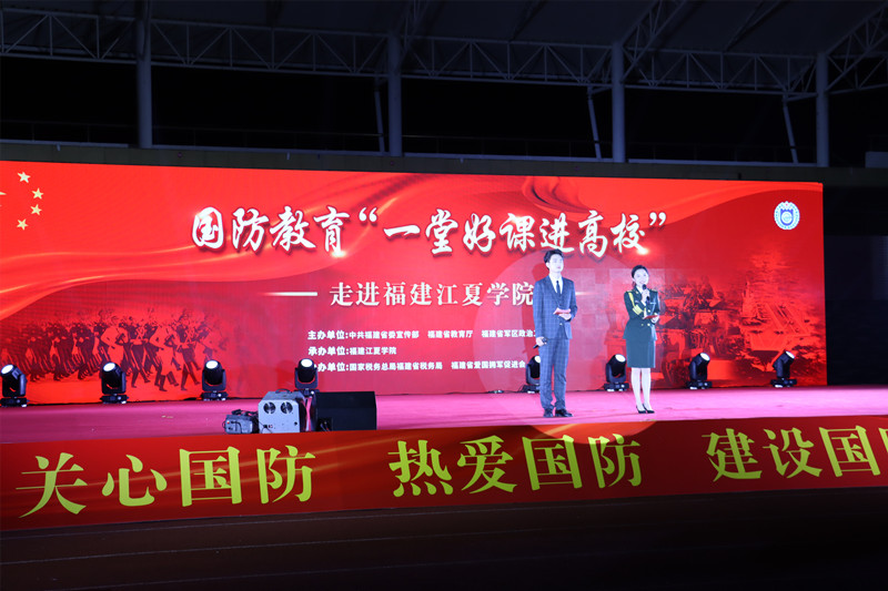 为深入学习贯彻习近平强军思想,提升师生国防意识,推动学校主题教育持续升温,5月23日晚,由省委宣传部、省教育厅、省军区政治工作局主办,福建江夏学院承办,省税务局、省爱国拥军促进会协办的国防教育“一堂好课进高校”活动走进我校。省委宣传部二级巡视员章锦德、 省教育厅二级巡视员李燕华、省税务局副局长郑孝真,校长凌启淡,省军区政治工作局大校副主任周晓松、省爱国拥军促进会会长黄序和,校党委副书记王长勇,我校4000多名师生参加活动。