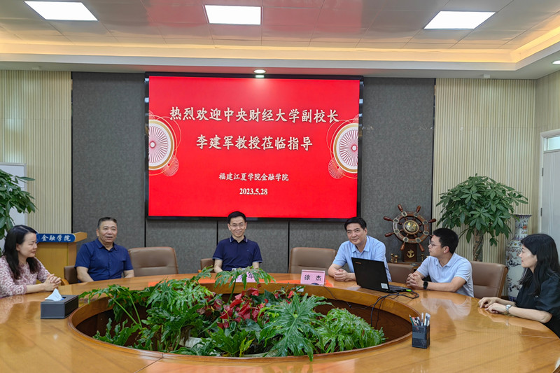 徐杰对李建军的到来表示热烈欢迎,感谢其长期以来对金融学院专业建设、学科发展的关心与支持,表示要进一步深化两校间的合作,多向中央财经大学“取经问道”,学习借鉴“双一流”建设高校的好经验好做法,助力学校高质量发展。