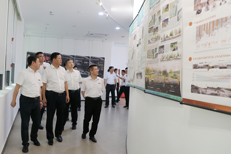 来宾一行实地参观了学校艺术课程学生作品展、货币博物馆、直播短视频新媒体营销实验室和省财富管理虚拟仿真实验教学中心。