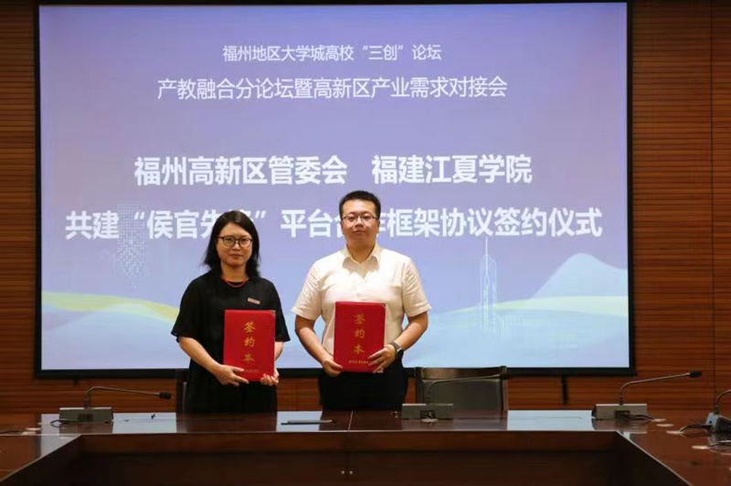 6月10日下午,福州地区大学城高校“三创”论坛产教融合分论坛暨高新区产业需求对接会举行。副校长刘慧宇代表我校与福州高新技术产业开发区管理委员会签订共建“侯官先锋”平台合作框架协议。