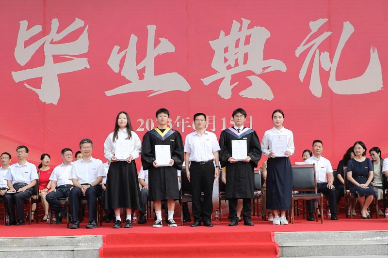 校领导为毕业生颁发毕业证书、学位证书,为优秀毕业生代表颁发荣誉证书,为2023年校长通令嘉奖获奖个人和集体颁发校长嘉奖令。毕业生们手捧证书与校领导合影留念。