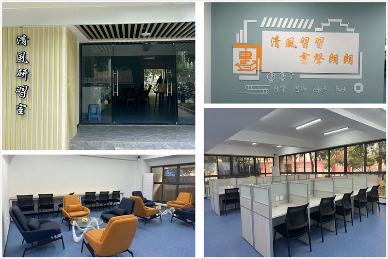 清风研习室位于生活区7号楼架空层,经过装修改造,可容纳82人自习。室内打造廉洁文化墙,并配备热水吧台、空调、网络、安保监控等硬件设施,环境舒适温馨,有利于师生在沉浸式学习中潜移默化接受廉洁文化教育,形成读书思廉、读书明志、读书养德的文化氛围。