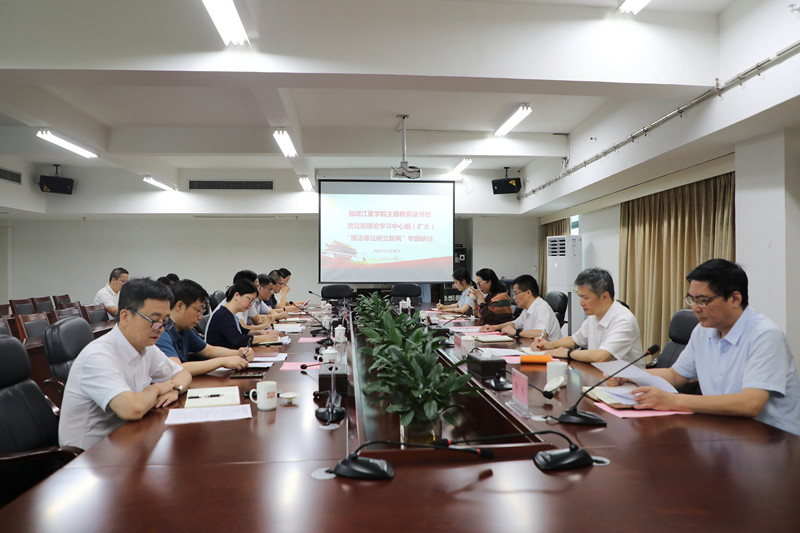 凌启淡强调,全校上下要牢牢抓住主题教育这一契机,认真学习贯彻习近平总书记有关主题教育系列重要讲话精神,深刻领悟以学铸魂、以学增智、以学正风、以学促干重要要求,立足学校实际和岗位职责,切实把理论学习、调查研究、推动发展、检视整改贯通起来,一体推进,在学思践悟习近平新时代中国特色社会主义思想中进一步提振干事创业精气神,把学习成果转化为加快建设区域一流财经政法大学的生动实践和实际成效,为奋力谱写中国式现代化福建篇章作出福建江夏学院应有贡献。