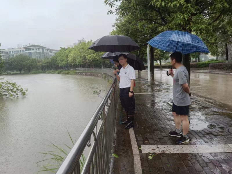 7月29日上午,校党委书记宋建晓、校党委副书记陈敏辉带队巡查校园防台防汛情况。