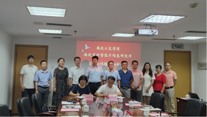 8月25日下午,福建江夏学院与福建省科技厅福建省科学技术信息研究所战略合作签约仪式举行。省科技厅党组副书记、副厅长游建胜,我校副校长朱四海出席仪式。