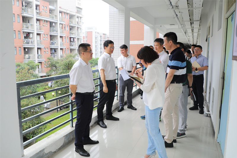 校领导一行先后检查教学楼、图书馆、多媒体教学管理主控中心、中通道、学生宿舍楼、学生食堂、健康驿站等,详细了解新学期开学准备工作情况,对学生返校、迎新报到、教学管理、后勤服务保障、防台防汛等工作进行重点检查和指导。