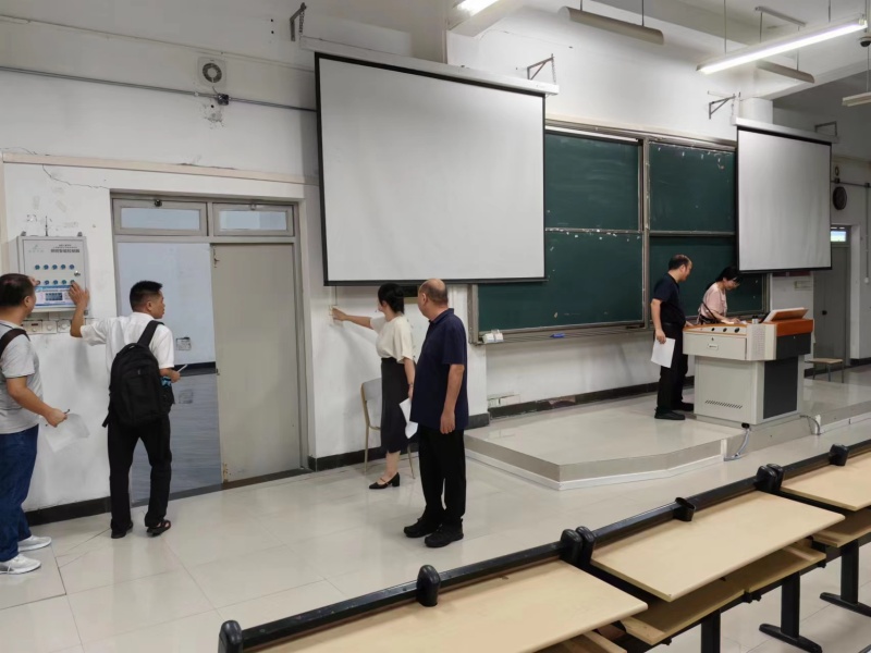 教务处与各二级院部巡查各教学楼、实验楼,察看教学资源、实验室和教学设施情况,积极同基建与后勤管理处、实验室建设与设备管理处、现代教育技术中心联系,保障教室、实验室内教学设备正常运行;及时与学生工作部沟通,了解学生实时返校报到情况,做好正常开课和延期开课两手准备;密切与教材供书商对接,确保教材全部发放到位,为9月8日秋季“开学第一课”教学平稳运行提供保障。