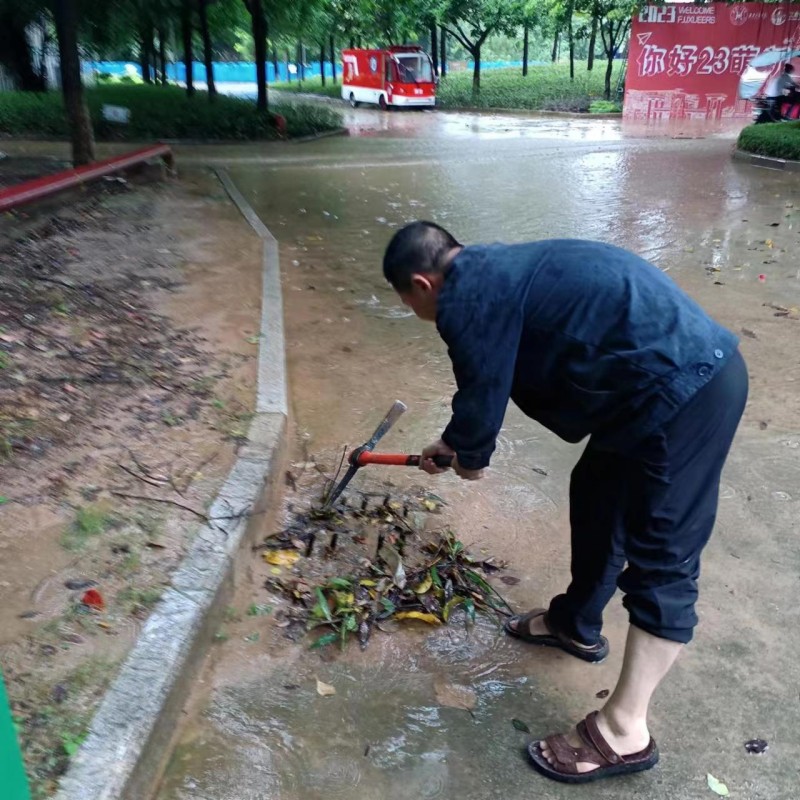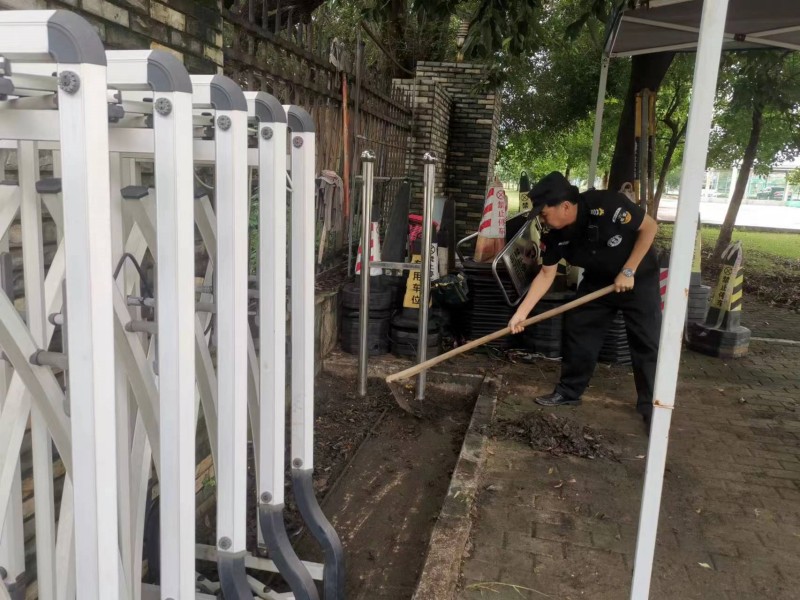 后勤物业和保安队伍全面清扫、清障、加固,完成路面清洁、淤泥清理、水渠疏通等工作,有序引导返校学生入校入住。