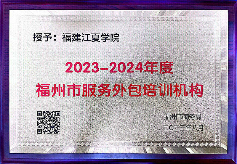 近日,福州市商务贸易促进会召开年会,认定一批单位为2023-2024年度福州市服务外包培训机构,我校位列其中。继续教育学院负责人参加年会并受牌。
