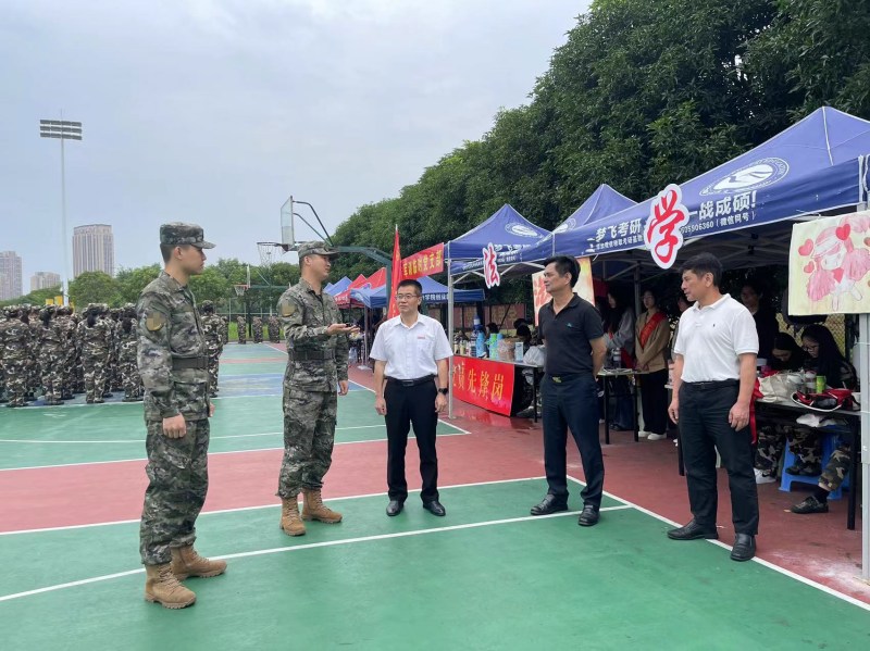 场上,新生们列队整齐、摆臂有力,尽显青春英姿;教官们口令响亮、纪律严明,展现军人本色。训练间隙,校领导来到教官、学生中间,与大家亲切交谈,认真询问教官军训进度,了解同学们的训练感受、身体健康、学习生活等情况,以及各服务点的医疗保障、值班值守安排。