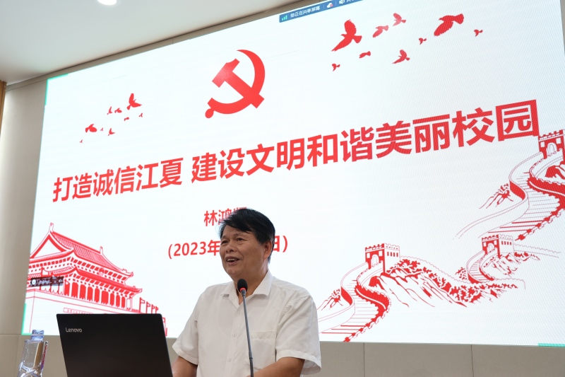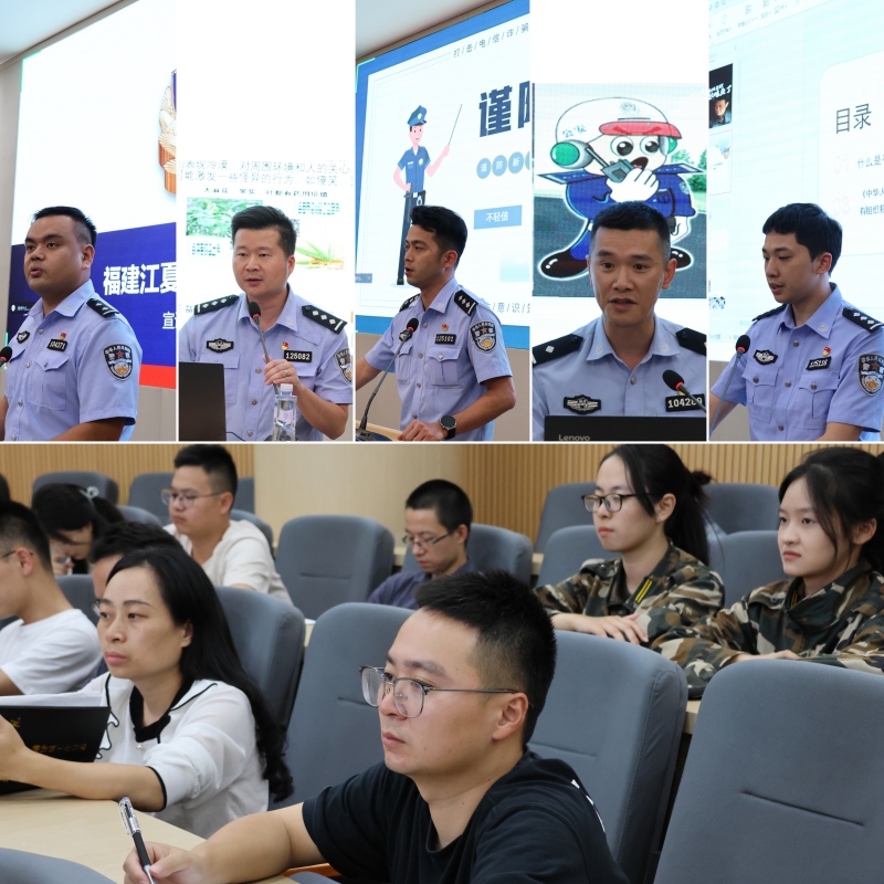 林鸿坚以“打造诚信江夏 建设文明和谐美丽校园”为题进行宣讲,教育引导学生以身作则,树立诚信意识,以实际行动践行诚信理念。认为学校在军训期间开展此次活动,是践行“为党育人,为国育才”初心使命的有力举措,让学生在部队纪律和军营文化的熏陶下,切身感受军人的忠诚品质,进一步深入领会诚信的内涵,从而更好做到诚信立德,诚信立身,诚信立行。分局诚信宣讲团施豪杰、许杰峰、黄思亮、郭毅、黄亮伟等5名成员结合工作经验,以案说法,围绕国家安全、预防诈骗、禁毒、交通安全、反有组织犯罪等专题开展安全教育宣讲。金融学院周靖洁代表新生发出倡议:做一名诚实守信的青年大学生,共同构建安全文明、诚信和谐的美好校园。