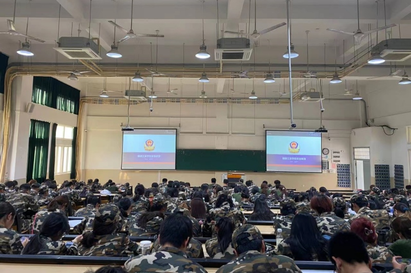 讲座结束后,全体新生现场参观学习安全教育宣传展板。