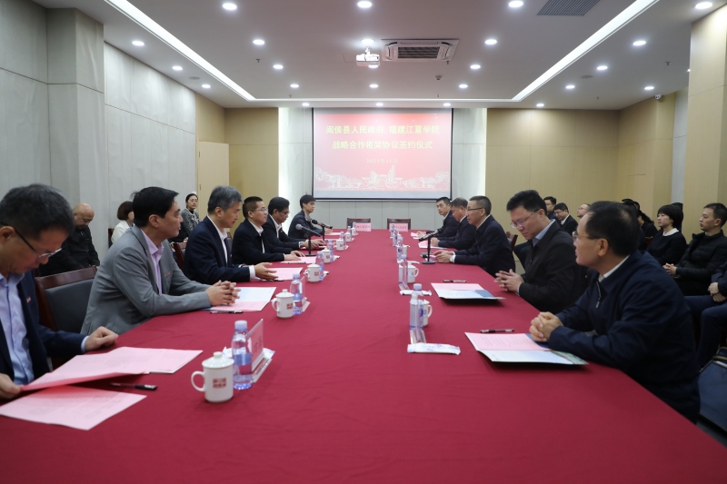 11月18日上午,福建江夏学院与闽侯县人民政府战略合作框架协议签约仪式在我校图书馆一层会议室举行。闽侯县委书记赵明正,县长王建生,县人大常委会党组书记、主任黄诗杨,县政协党组书记、主席陈祥波,县委副书记林国晃,县委常委(正处长级)林巍,副县长叶键,校领导凌启淡、王长勇、陈敏辉、刘慧宇、徐杰、林学坚、朱四海出席签约仪式。