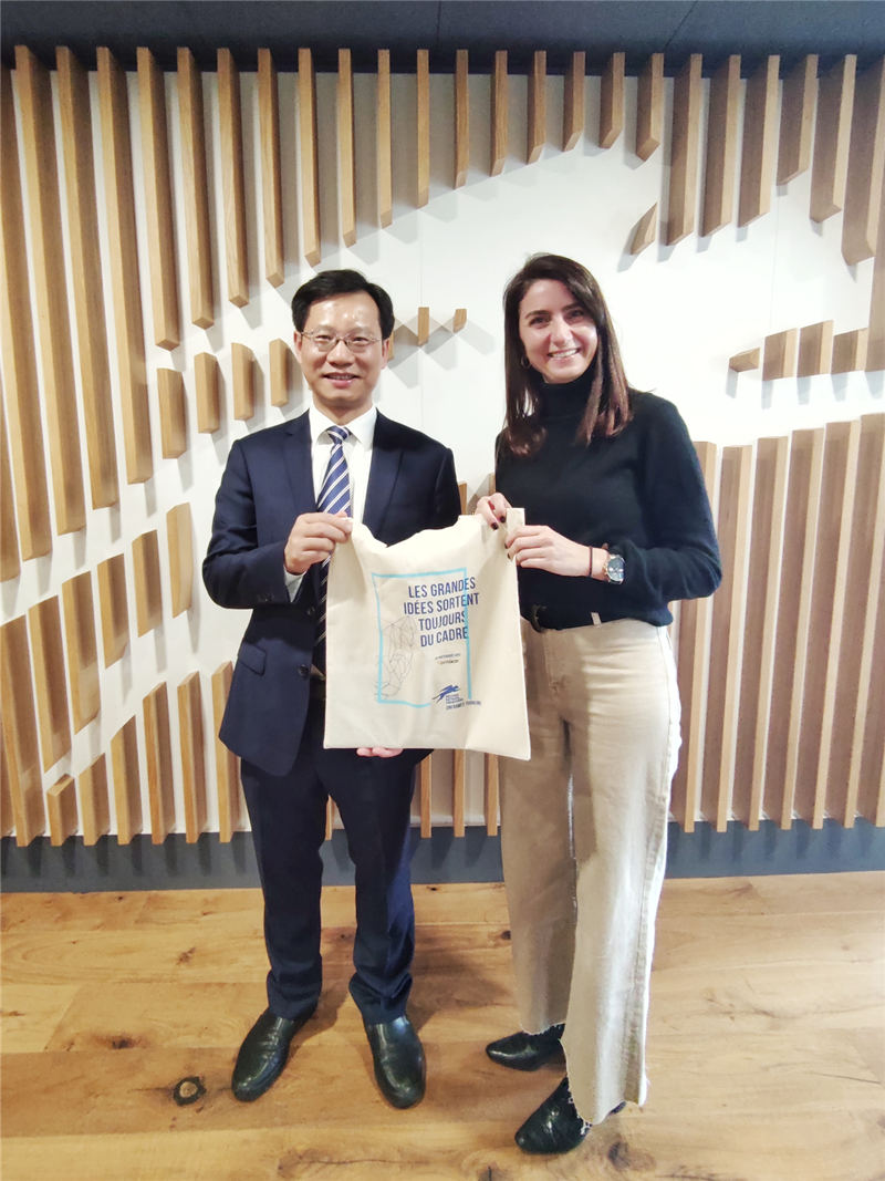 宋建晓书记与雷恩商学院高级发展总监Stépanie HIAUMET互赠礼物