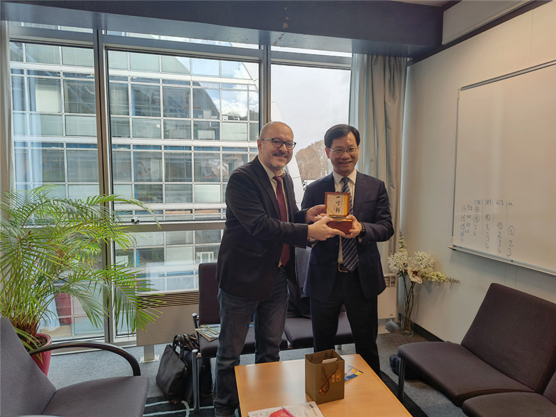 宋建晓书记向弗朗什-孔泰大学应用语言学院院长Carlos Tabernero赠送礼物