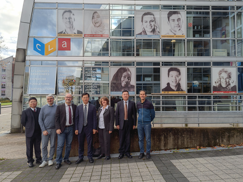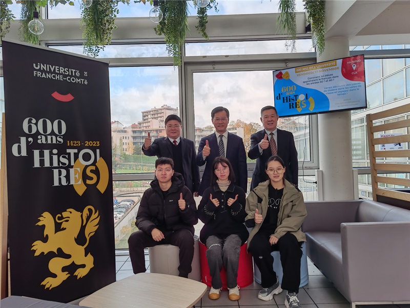 在弗朗什-孔泰大学,宋建晓会见了该校应用语言学院院长Carlos Tabernero、行政事务负责人Florian Chapey、教育合作负责人Isabelle Bokhari、法语学习大学文凭-对外法语教学协调专员Chokri Essaies。访问团参观考察了图书馆、教室、实验室、校区建设等情况。会谈中,宋建晓介绍了建设区域一流财经政法大学和深入推进国际化进程的目标愿景,面向未来,希望两校进一步聚焦语言、文化、社会等领域开展合作,开发更多师生交流的项目,在合作共赢中继往开来。两校就签署文化科学合作框架协议达成共识,重点围绕在线语言辅导计划、在线语言学习搭档、DUEF(大学法语学习文凭)语言、文化与社会、法语强化课程等方面开展合作。