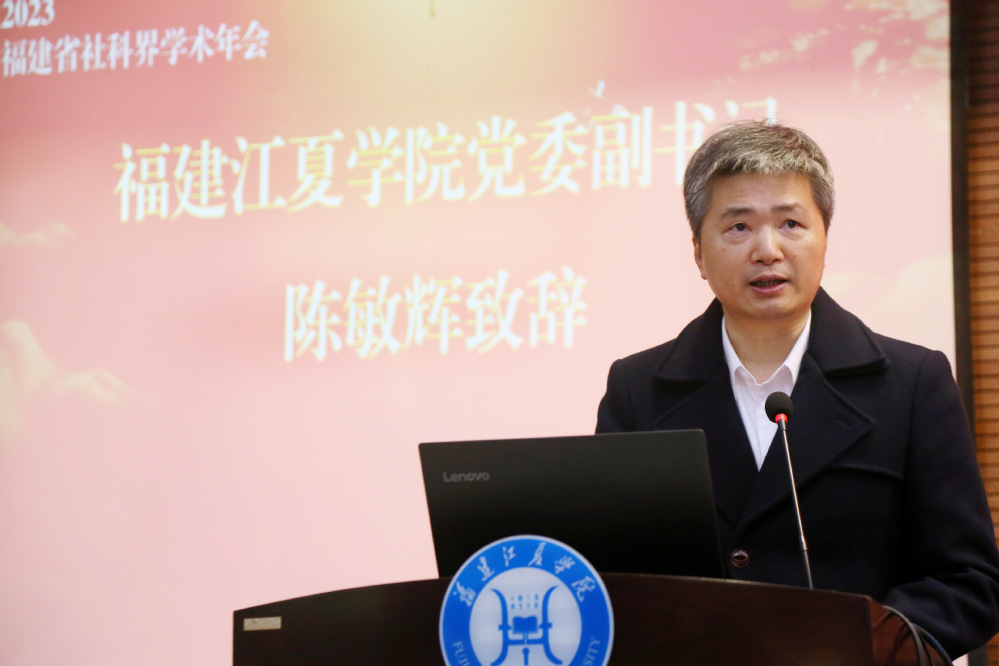 为深入学习贯彻党的二十大精神,贯彻落实习近平文化思想,11月25日,由福建省社会科学界联合会主办,福建江夏学院设计与创意学院,福建学习科学学会,福建江夏学院闽台传统文化现代化研究中心、乡村文化研究院、冯梦龙文化研究所联合承办的福建省社会科学界2023年学术年会“闽台文缘相承与中华优秀传统文化创新性发展”论坛在福建江夏学院举办,为学术界和实践领域的专家学者提供深刻洞察中华文化传承与创新的平台。福建江夏学院党委副书记陈敏辉出席开幕式并致辞。