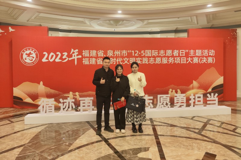 “12·5国际志愿者日”当天,由省委文明办、团省委、省民政厅等10家单位共同主办的2023年福建省新时代文明实践志愿服务项目大赛在泉州举行颁奖仪式,奖励入围4日决赛并获奖的项目。我校选送的“云泱”非遗文化创新实践志愿服务项目(负责人:何佳佳,成员:鲁亦染、陈欢、陈兴举、黄思妮、李雯、陈美均、石梦丽、赵思祺、胡严晗、卢行,指导老师:朱雷达、陈诗涵)荣获铜奖,实现在该项赛事上零的突破。