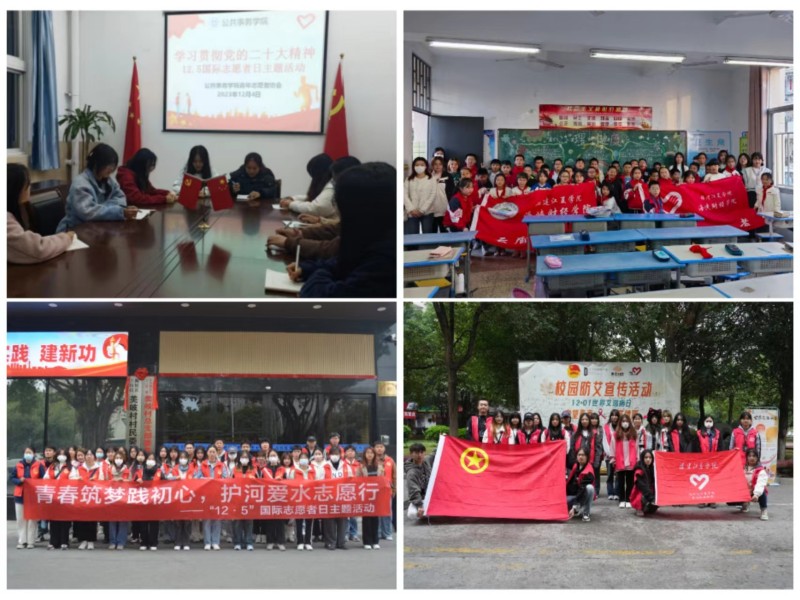 为迎接第38个国际志愿者日,我校在“12·5”国际志愿者日集中开展志愿服务行动,广大团员、青年志愿者围绕“青春 奉献 建功”主题,积极开展学习党的二十大精神座谈会,以及国家宪法日主题宣传、世界艾滋病日主题宣传、校园美化、无偿献血、反诈主题团日、社区志愿服务、爱心义教、护河爱水等志愿服务活动,志愿服务总时长达4万余小时,活动参与人数总计12660人次,教育引导广大青年学生积极践行奉献、友爱、互助、进步的志愿精神,共享文明发展成果。