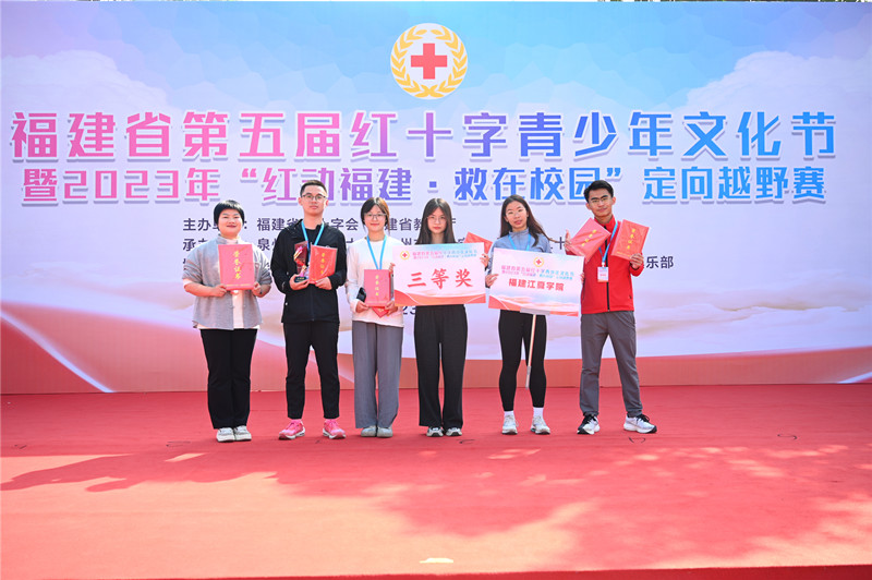 12月10日,由省红十字会、省教育厅主办的福建省第五届红十字青少年文化节暨 2023 年“红动福建・救在校园”定向越野赛在泉州举办,由校团委郭勤、陈湘琦老师担任领队,刀国成、朱家欣、林嘉诚、何欣雨、王雨欣5名同学组成的参赛队伍荣获三等奖。