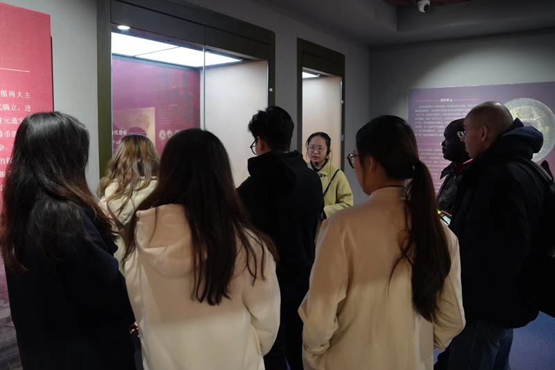 12月25日下午,我校货币博物馆迎来一批特别的访客,2名外籍教师和3名国际学生在国际合作处的组织下,带着对中国货币的好奇与期待,来到馆内参观。