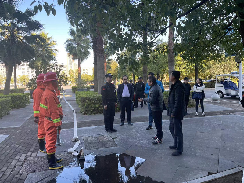 会后,督导检查组一行通过查阅资料、实地测试、模拟拉动、随机提问等方式,分组重点察看了行政楼、教学楼、图书馆、实验室、食堂、学生宿舍、消防控制站等消防重点区域和人员密集重要场所,围绕学校落实消防安全责任制、制度建设、设施建设、队伍建设、教育演练、日常巡查、隐患排查、问题整改等方面开展详细检查,就相关从业人员消防器材使用和设备操作技能掌握情况进行考核。督导检查组对我校消防管理和设施设备维保工作情况及成效表示肯定,同时逐条反馈检查中发现的问题隐患,并提出针对性整改意见和要求。