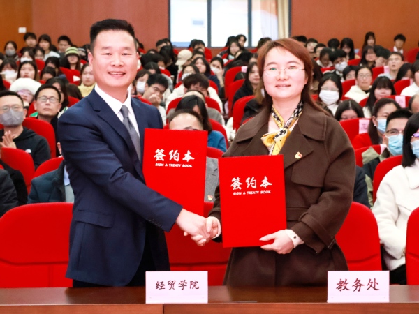 2024年1月5日,经济贸易学院举行以“学思想、明方向、担使命、攀新高”为主题的第九届“党旗领航”系列活动启动仪式。副校长朱四海出席活动并讲话。组织部、教务处、科研处、审计处,经贸学院班子成员、师生党员、入党积极分子共350余人参加活动。