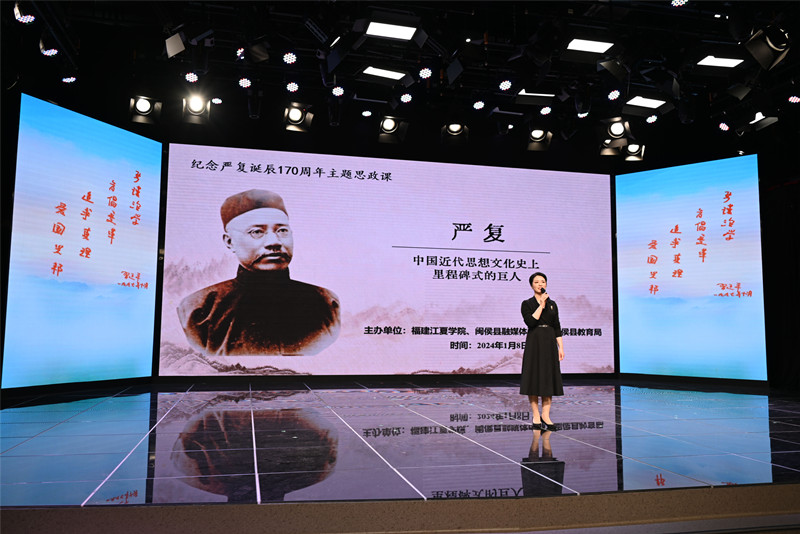 1月8日,在严复诞辰170周年纪念日当天,福建江夏学院马克思主义学院、校团委、学工部联合闽侯县融媒体中心、闽侯县教育局,推出“严复:中国近代思想文化史上里程碑式的巨人”的主题思政课,为福建江夏学院师生和闽侯县中小学生带来一场生动的大思政课。
