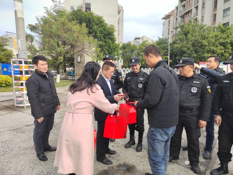 校领导先后慰问了校区大门、总值班室、应急指挥中心等区域的值班人员,实地察看他们的工作环境,详细了解寒假期间校园管理、后勤安保等相关工作情况,对春节假期仍然坚守岗位、辛勤付出的在岗教职员工表示诚挚慰问,代表学校师生送上新年祝福和春节慰问品。