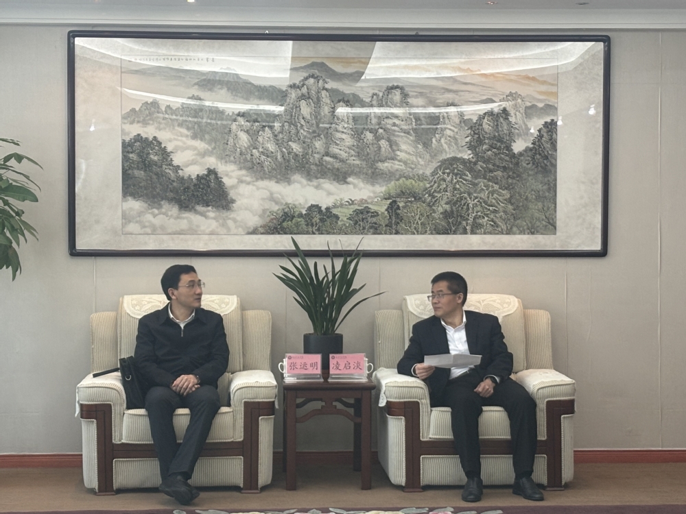凌启淡欢迎张运明一行到访我校,感谢民建省委会长期以来关心关怀我校民建支部建设。凌启淡简要介绍了学校发展的基本情况,以及学校在落实党的统一战线方针政策,推动高质量发展的主要做法。希望我校民建支部保持与民建省委会的沟通和联系,加强支部建设,为学校建设区域一流财经政法大学作出新的贡献。