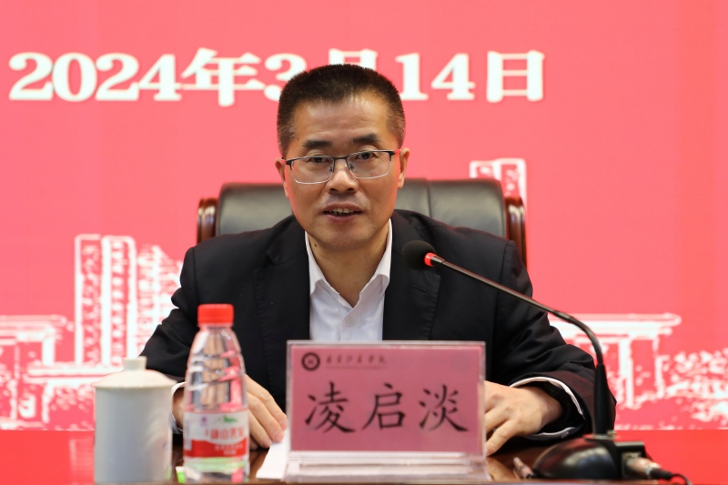 凌启淡从五个方面对学校2024年春季学期主要工作进行部署:一是深化拓展“三争”行动,加强和改进新时代学校党建工作,巩固拓展主题教育成果,推动学习贯彻习近平新时代中国特色社会主义思想走深走实,以高质量党建引领学校各项事业高质量发展;二是落实立德树人根本任务,坚持以提高生源质量为中心,强化招生管理,落实“五育并举”培养高素质应用型人才,多措并举推进毕业生就业,深入扎实做好校友工作,构建“招生-培养-就业-校友”全链条育人体系;三是强化科研支撑,突出抓项目、搭平台、出成果、建团队,以面向国家战略需求和服务地方经济为导向,开展有组织的科研,不断提升服务区域经济社会发展能力;四是坚持改革创新,持续完善学校组织结构、管理体制和运行机制,推动内部治理科学化、民主化、法治化,切实提升治理体系和治理能力现代化水平;五是坚持“开源节流”,盘活现有资产,积极拓展非学历教育项目,着力提高资金筹措能力,不断提升服务保障水平。