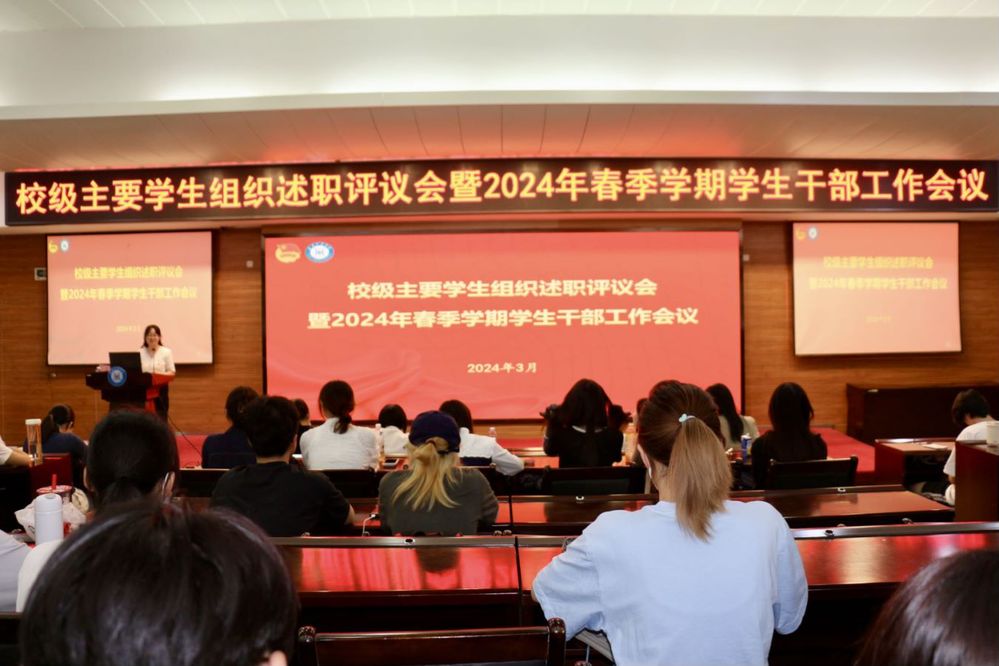 3月25日,校级主要学生组织述职评议暨2024年春季学期学生干部工作会议在4C103召开。校团委书记张彩云作总结讲话。会议由校团委副书记刘贝蓓主持。会议传达学习了习近平总书记在全国两会期间的重要讲话精神和十四届全国人大二次会议、全国政协十四届二次会议精神,习近平总书记在湖南考察时的重要讲话精神,重温了习近平总书记在庆祝中国共产主义青年团成立100周年大会、学校思想政治理论课教师座谈会上的重要讲话精神,以及习近平总书记关于加强和改进民族工作的重要思想、关于宗教工作的重要论述。
