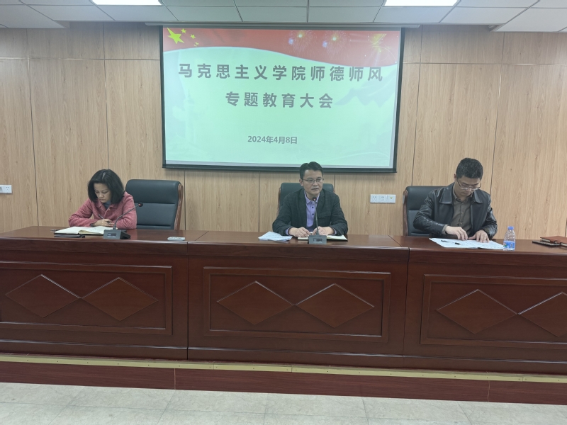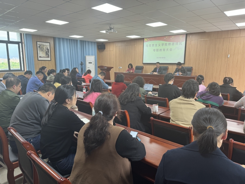 为深入贯彻上级关于师德师风建设工作精神,进一步落实《福建江夏学院二级院(部)师德师风建设责任制实施办法)》,加强马克思主义学院师德师风建设,4月8日下午,马克思主义学院召开师德师风专题教育大会。会议由郑光辉书记主持,学院全体教师参加。